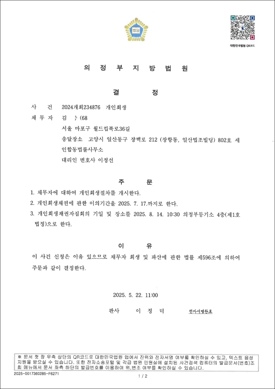 HOME > 포토갤러리 > 개시결정문