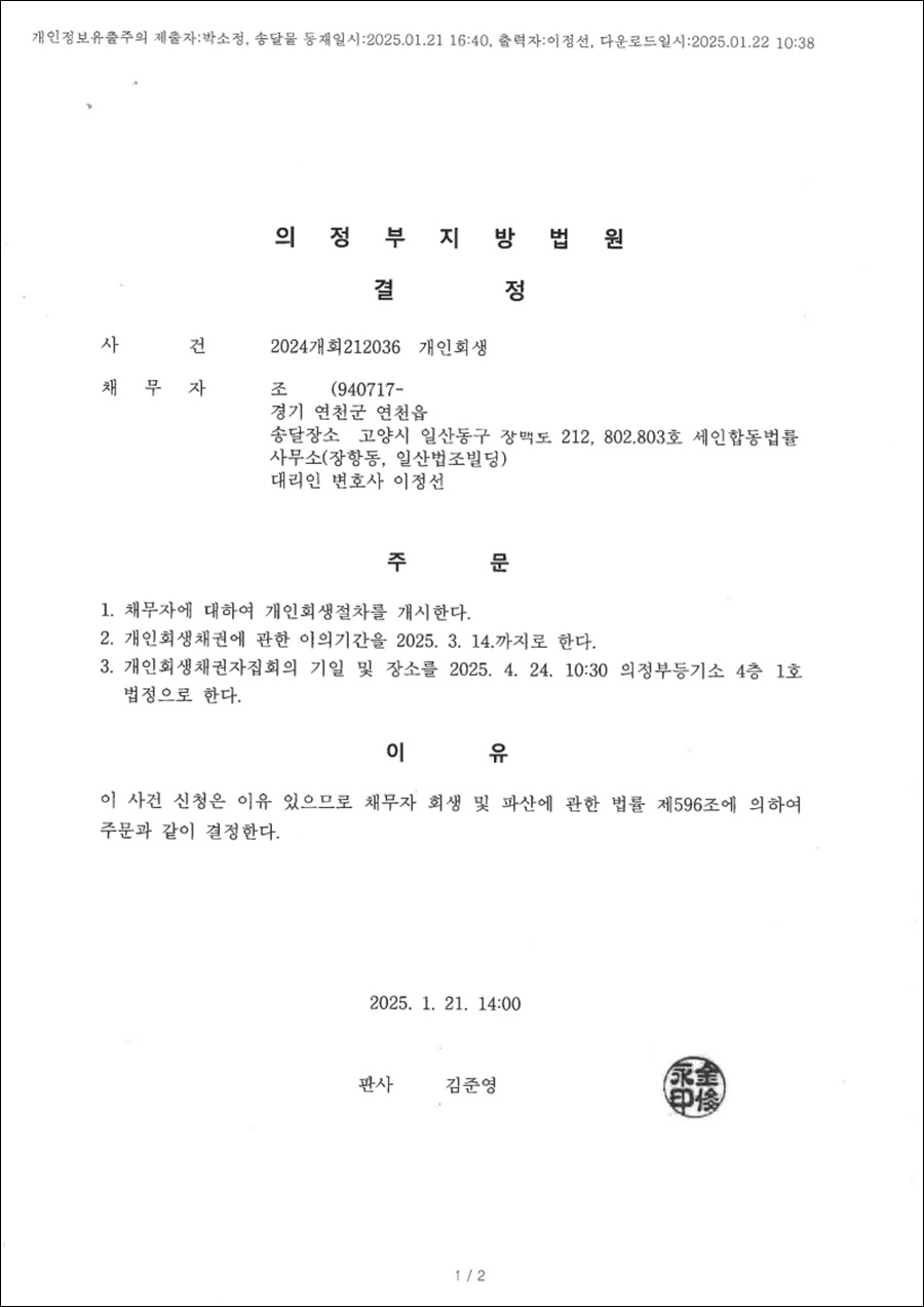면책결정문