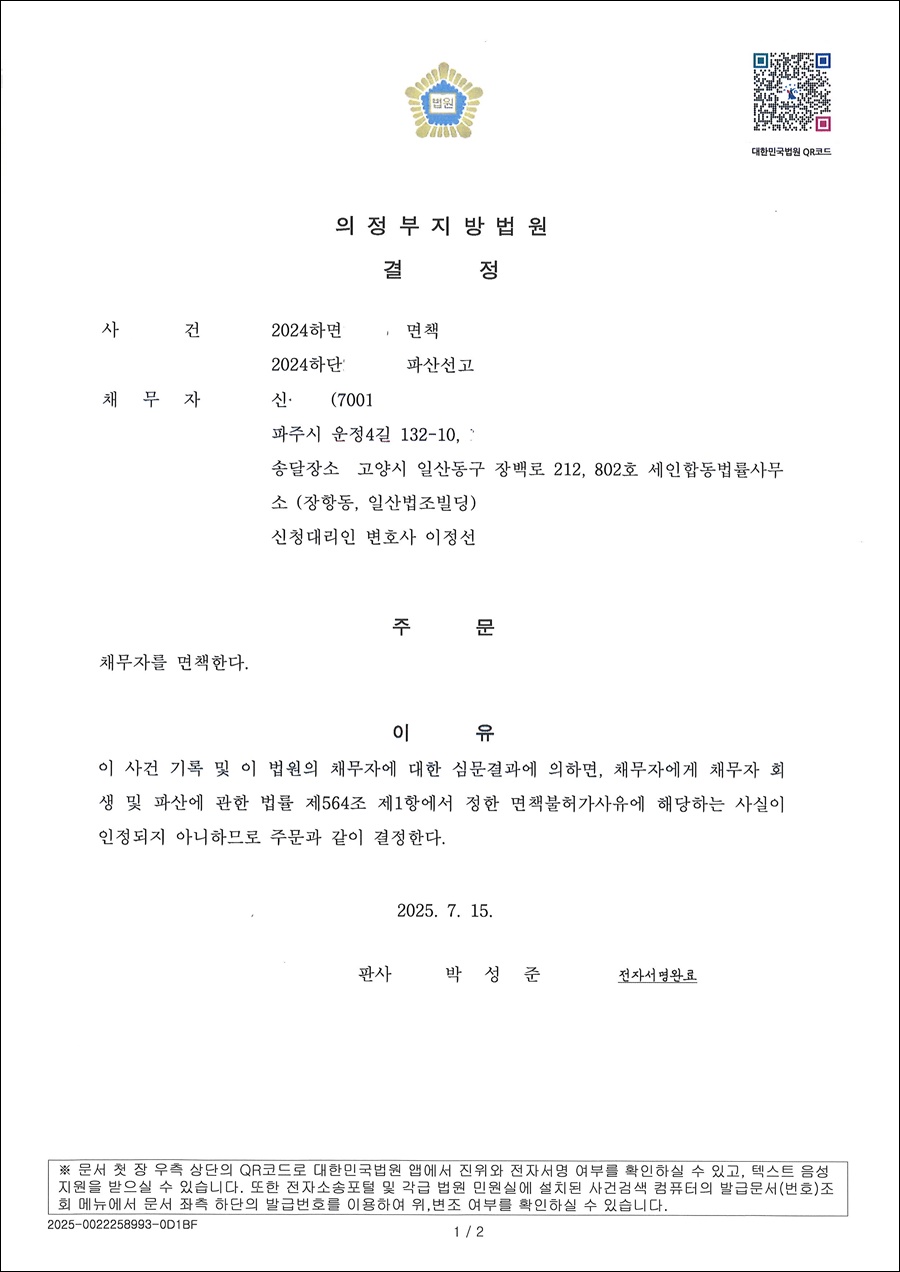 면책결정문