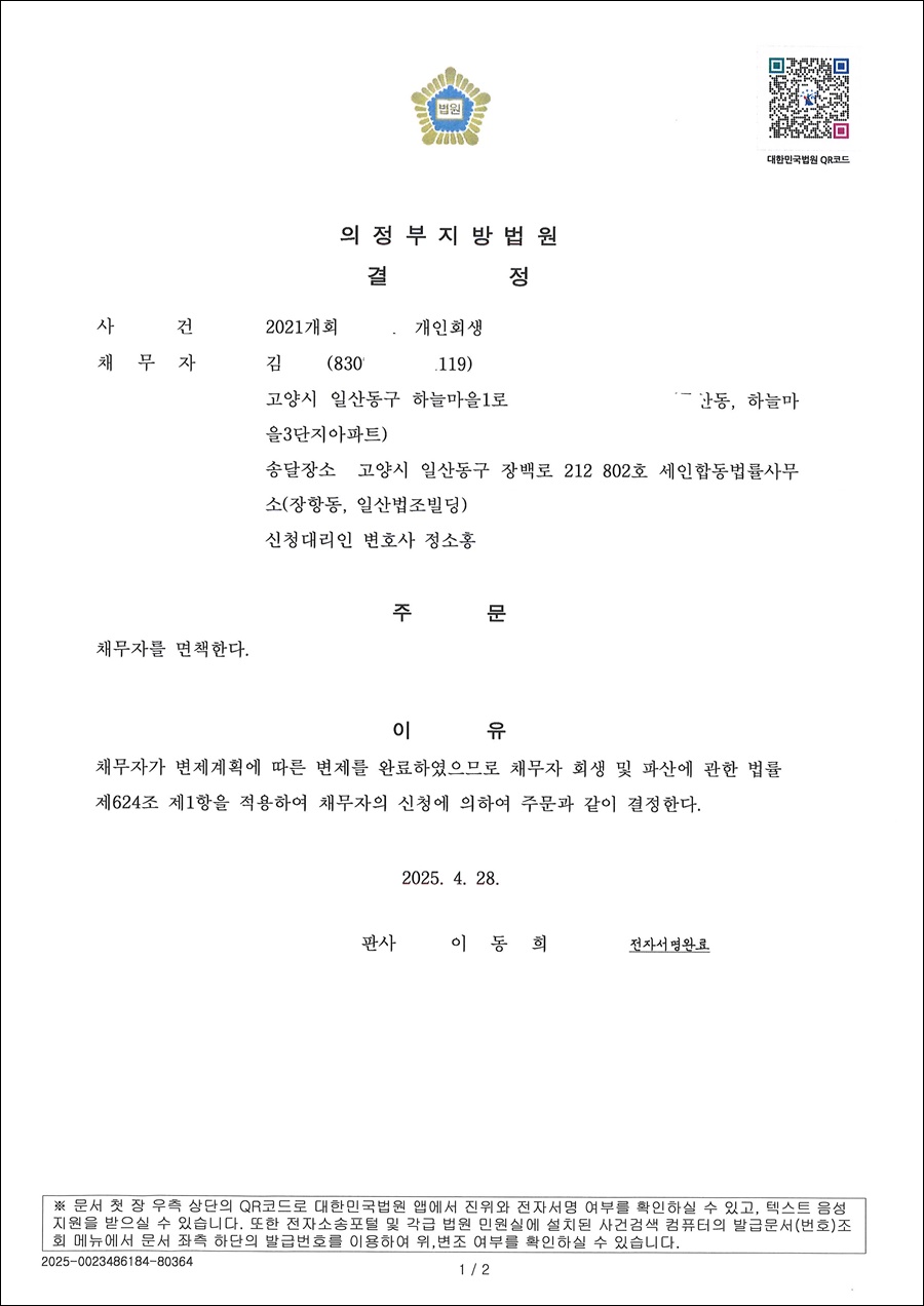 면책결정문