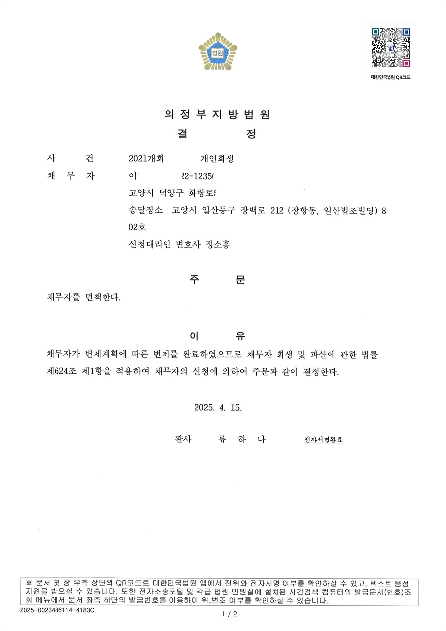 HOME > 포토갤러리 > 면책결정문